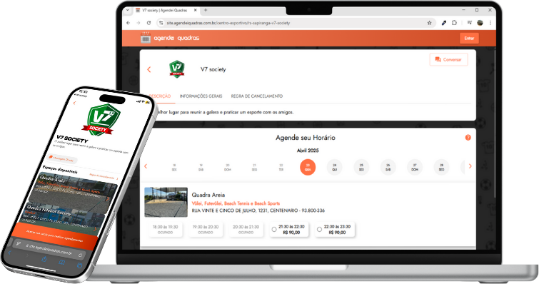 Futebol society, beach tennis, futevôlei e vôlei, escolha o seu esporte favorito e divirta-se no V7 Society!
